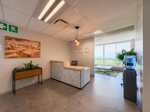 The office park has 24-hour security, access control at the entrance, and building-level security measures. The location is in the center of La Lucia, a fast-growing business hub. It is within walking distance of shopping centers like La Lucia Mall and Gateway Theatre of Shopping, as well as restaurants, supermarkets, and services. Major highways are nearby, and King Shaka Airport is a 15-minute drive away.