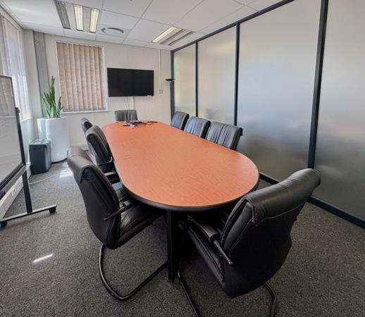 Comprising approximately 950 m across three fully fitted units one on the ground floor and two on the first the building offers a versatile layout designed for functionality and comfort. Each office features a blend of open-plan work areas, executive offices, boardrooms, and kitchen facilities, with shared restrooms conveniently located on each level. The design promotes both collaboration and privacy, ideal for dynamic, growing businesses.