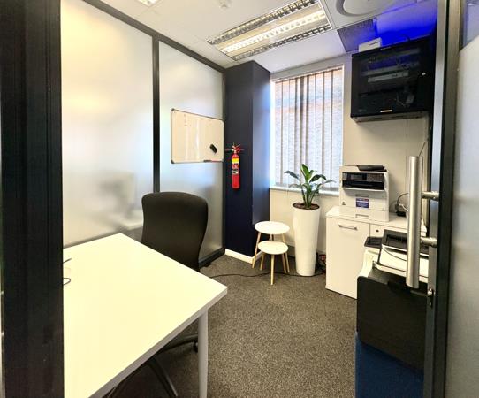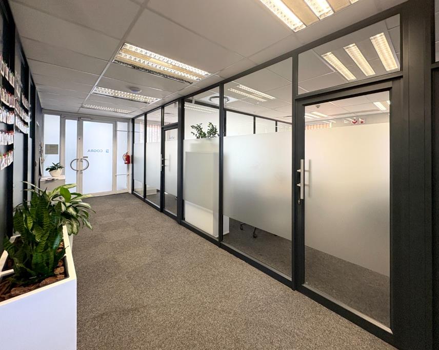 Measuring approximately 333 m and situated on the ground floor, this fully fitted office features open-plan work areas, executive offices, boardrooms, a modern kitchen, and private balconies. Additional features include a full back-up generator, back-up water supply, high-speed fibre connectivity, 24-hour security, landscaped gardens, and ample parking. Tenants can also enjoy a vibrant outdoor break area perfect for informal meetings or a moment of relaxation.
