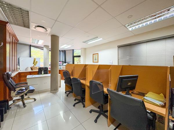 Ground floor office unit available to rent at 8 Torsvale Crescent in La Lucia Ridge, Umhlanga offers 278 sqm of prime office space. The unit is equipped with male & female ablutions and a small kitchen, a welcoming reception area & 4 large offices to cater to different divisions. The unit is fitted with high grade finishing and is surrounded by large windows allowing for natural light to shine through. There are 7 allocated parking bays but more may be available if needed.