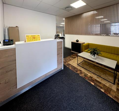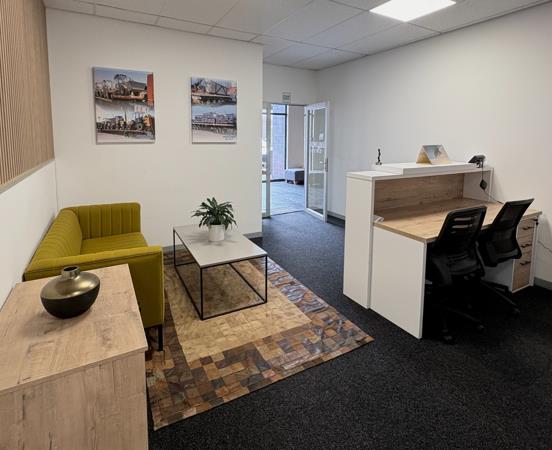 *A welcoming reception area leading into an open-plan workspace, adaptable for collaborative teams or individual workstations.