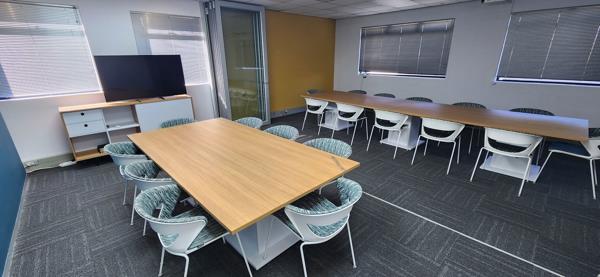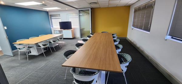 The office occupies the entire ground floor and comprises reception area, with laminate floors, large coffee station with seating area, large open plan area with 4 workstations, large training area with retractable folding door separating meeting/boardroom, small meeting room all carpeted, large balcony, kitchen, separate ladies and gents ablutions. Storeroom.
