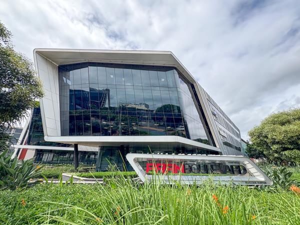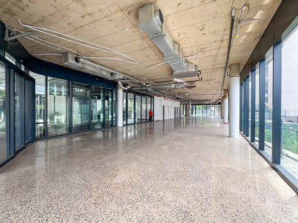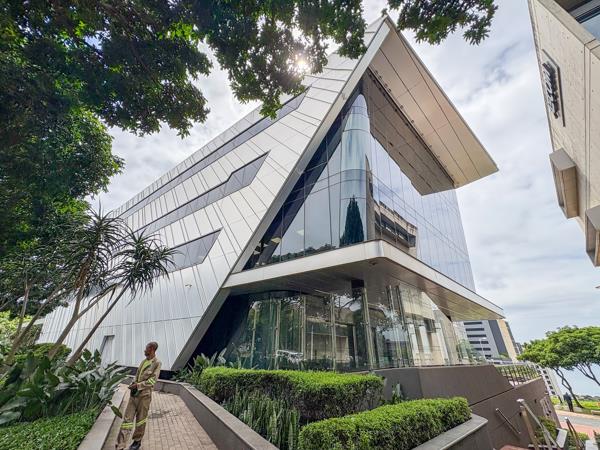 This state-of-the-art office space available to rent in Umhlanga features floor-to-ceiling glass panels, flooding the unit with natural light. The unit is situated on the ground floor and includes a large patio area that overlook the beautifully landscaped surrounds. The building offers lift and stair access, fingerprint access, 24-hour manned security and CCTV. The useable area is 445sqm, with the common area subject to measurements. There are 20 parking bays available at an additional cost of R1200 per bay per month.