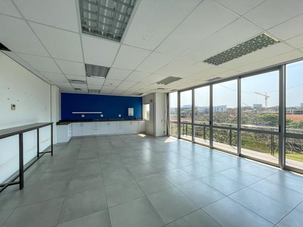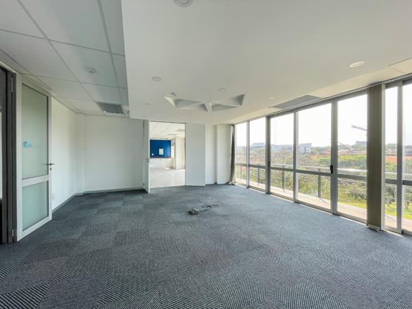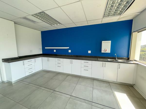 Immaculate office space available to rent in Umhlanga offers spectacular views from the large floor to ceiling aluminium windows that surround most of the office. The unit consists of a reception area, boardroom, a few private offices, a large canteen with a balcony aswell as a large open plan floor space. Additionally, the unit is equipped with male & female ablutions.