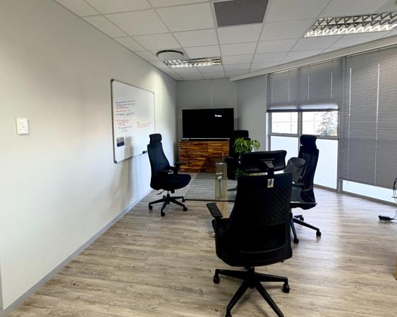 The unit comprises a welcoming reception area, an open-plan workspace, one spacious private office, as well as its own kitchen and toilet. It is fully fitted with ducted air conditioning throughout as well as the use of a back-up generator and enjoys lovely views, creating a comfortable and productive setting. A standout feature of the unit is its private outdoor braai area, ideal for entertaining or informal catchups with clients.