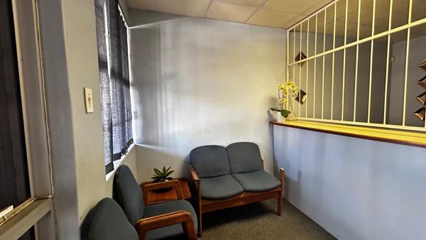 Its offers a waiting area for clients, reception area, two offices, one bathroom and a kitchen.
