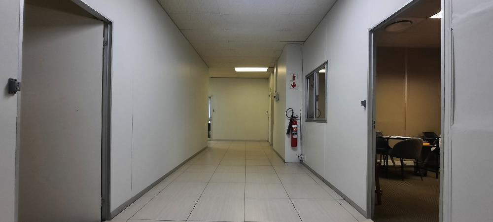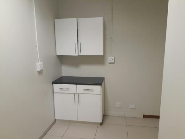 The space is to the immediate right of reception, leading to an air-conditioned office with its own store space or further office space just behind it, leading in from the passage behind the reception foyer. The common areas are kept neat and clean and the ablutions are also looked after by routine cleaning.