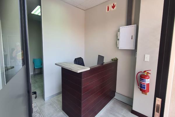 Neat upmarket office to let. This spacious neat and modern office is set in a quiet office block, close to the CBD and close to all major entrance roads. It has a reception area, board room and three offices. There is a bathroom and kitchen in the office.