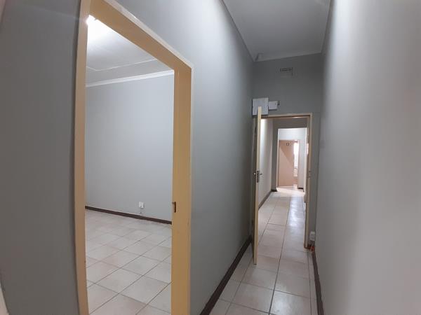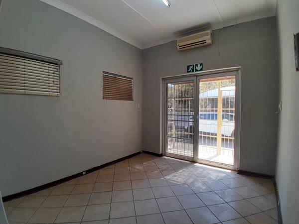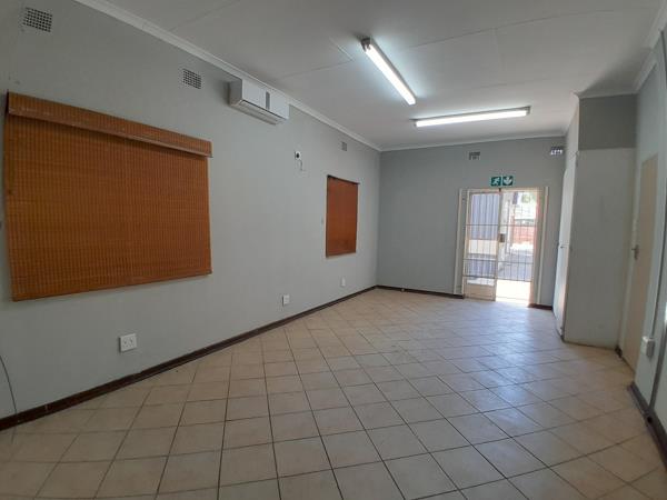 Freshly painted and newly updated, this office space offers a welcoming reception area, 2 private offices, 2 restrooms, and a kitchen. Located in Rustenburg Central, it''s within walking distance of Square Spar, Lifestyle Centre, and other popular businesses. The property features ample parking both inside and in front, perfect for staff and clients. Situated in a multi-tenanted office block, signage opportunities are available, and weekly yard maintenance is included. The interior boasts neutral light gray walls and matching floor tiles for a modern, professional look.