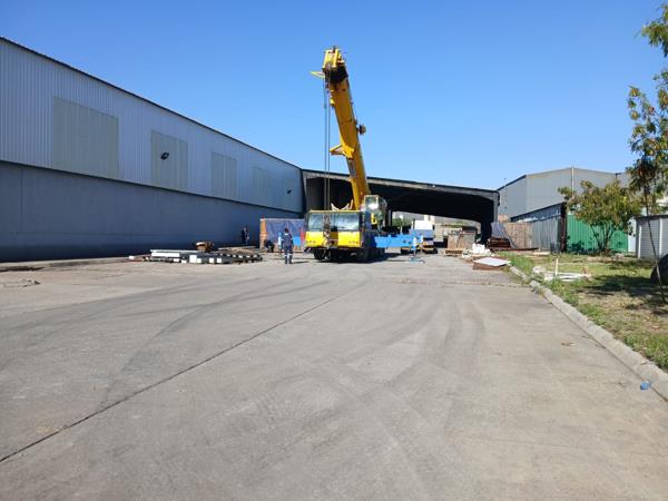 Beyond the offices, large double doors open to a massive warehouse featuring ten roller shutter doors and a fire suppression system. Additional roof extensions on either side of the warehouse provide sheltered space to keep vehicles and equipment dry and secure.