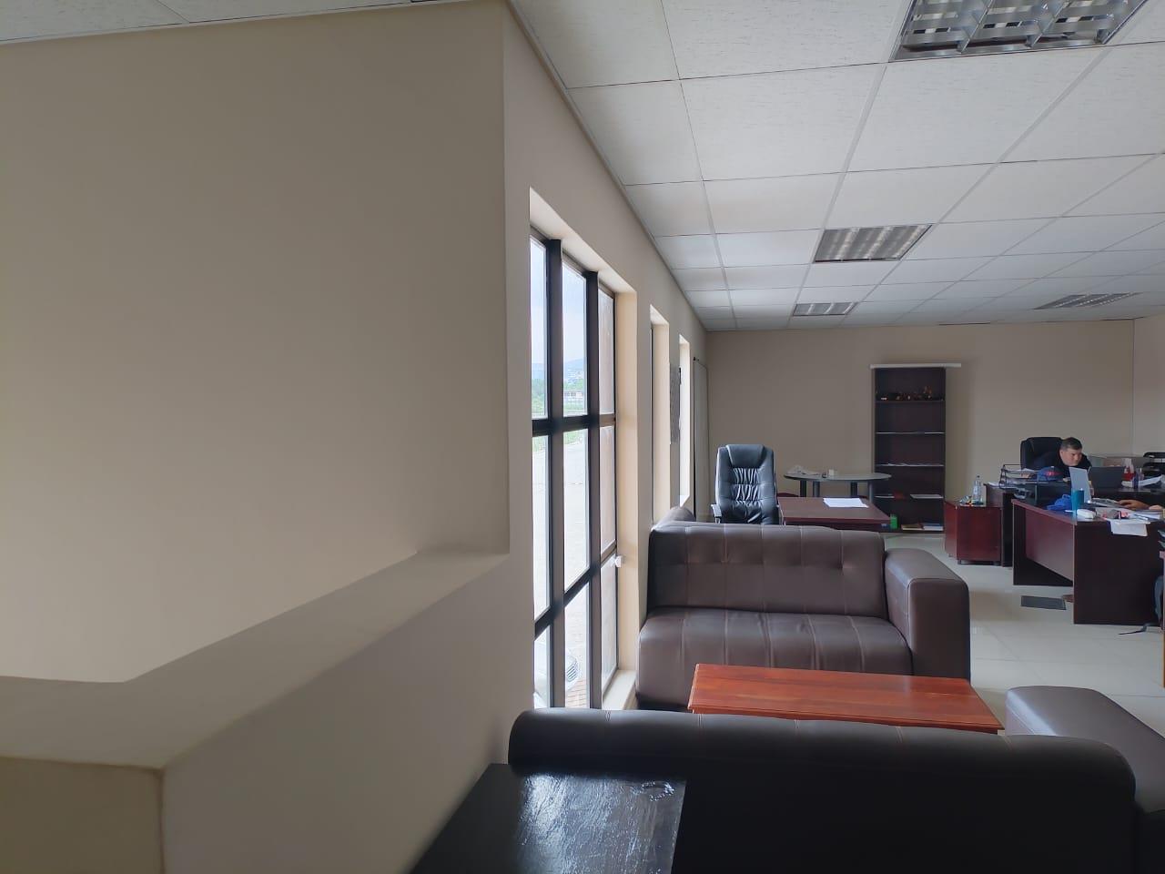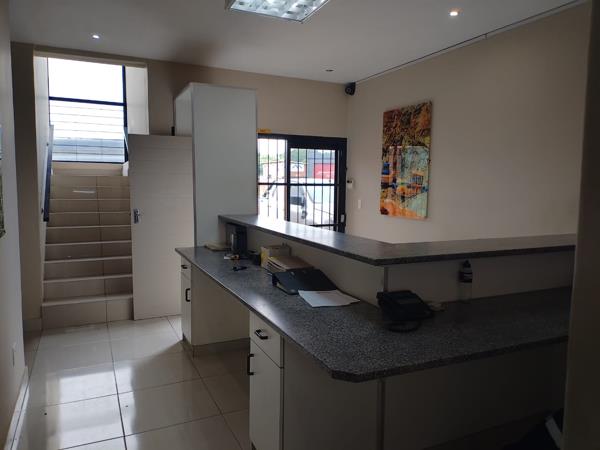This new on the market 395 sqm workshop in a well known business park with large open plan reception area with built in counter for easy over the counter sales, bathroom, leading to top open plan office area with loads of space, kitchen and bathroom, looking down on a double volume workshop with a high roller door plus mezzanine level for storage of parts - this is a rare find as it is mostly off the grid, switchover plug, bathroom and kitchenette in the workshop
