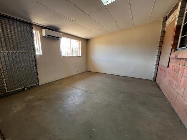 This adaptable commercial rental property in Beaconsfield, Kimberley, offers a substantial 150 sqm of floor space within a generous 3379 sqm erf, ideal for a range of business operations. The unit presents a versatile, open-plan layout characterized by durable concrete flooring and high ceilings, some featuring exposed beams or corrugated metal. Access is facilitated by large roller shutter doors, perfect for loading and unloading, complemented by internal doors leading to additional functional areas. The mixed wall finishes, including block, brick, and corrugated metal, provide a robust, industrial aesthetic ready for tenant customisation.