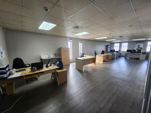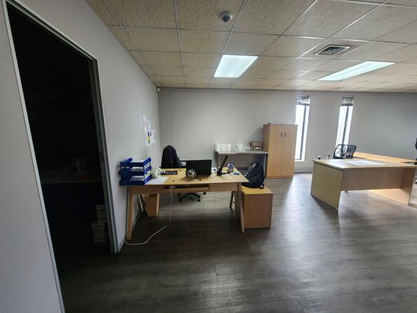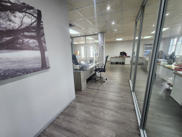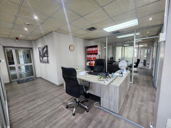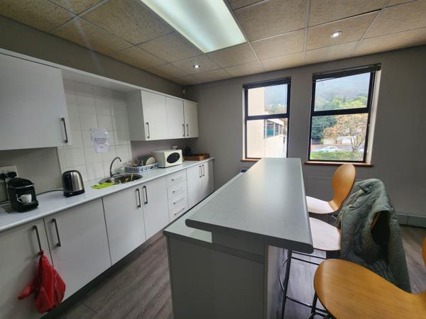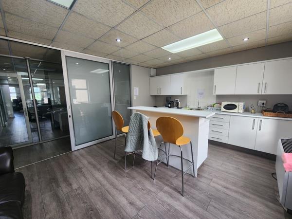 Secure upmarket offices with parking bays and lift access to the unit in the prime location of Paarl. The offices or neatly spaced out, giving staff members enough space for their desks. Seven staff members can be spread out evenly around the open plan office space, with one private office set up with shop front glass.
