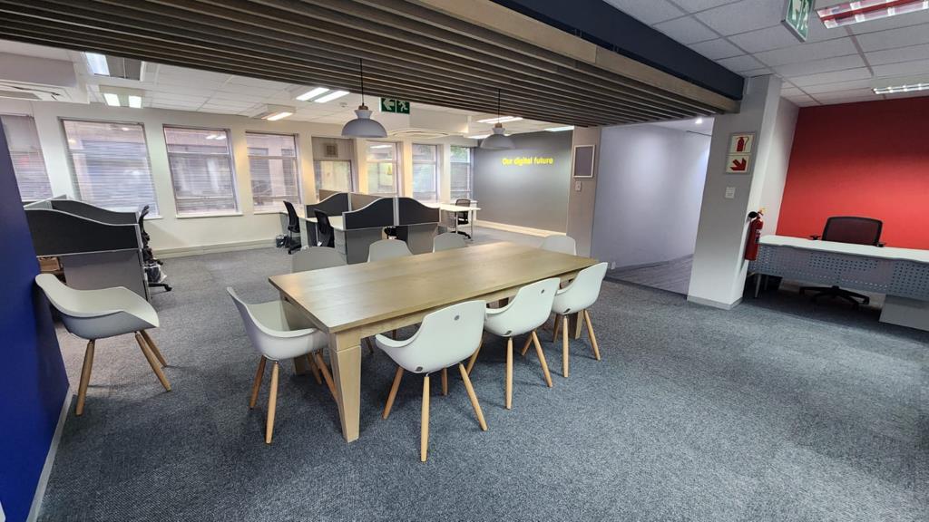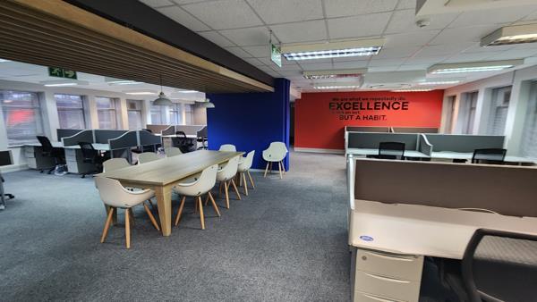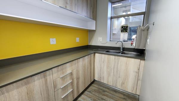 The office features a spacious open-plan work area, two private offices, and an exclusive kitchenette area. A walk-in safe is also available, providing additional secure storage. The unit is fully air-conditioned for year-round comfort, and tenants have access to communal restrooms on each floor. The building is fibre-ready, ensuring fast and reliable connectivity for modern business operations.