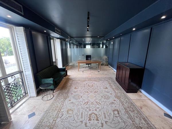 Nestled in the sought-after De Wagenweg Office Park in Stellenbosch, this elegant office unit offers a blend of vintage charm and modern functionality. The space is semi-furnished and features large floor-to-ceiling windows with classic vintage shutters, allowing for an abundance of natural light to create a bright and inspiring work environment. The glass-paneled entry and cream floor tiles enhance the sophisticated aesthetic, making a lasting impression on clients and visitors. With 24-hour security and access control, tenants can enjoy a safe and professional setting in a well-maintained office park.