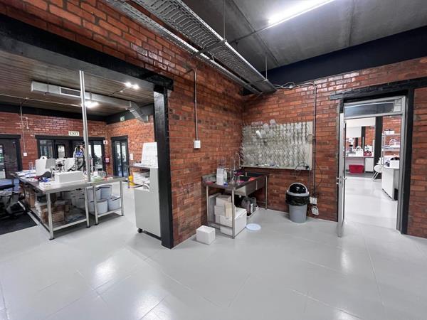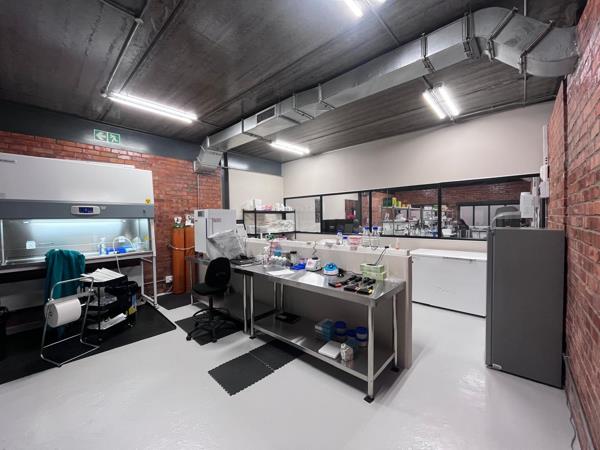Situated in the secure and well-maintained Woodmill development in Devon Valley, Stellenbosch, these commercial units are ideally suited for use as a laboratory, food preparation facility, or testing centre. The units offer a safe working environment with 24-hour security and access control, ensuring peace of mind for businesses handling sensitive processes. Internally, the spaces are fitted with durable epoxy floors and drywall partitions, which can easily be reconfigured or removed to create a more open-plan layout if required. The high-gloss facebrick facade, combined with exposed steel beams, gives the units a sleek, modern-industrial feel that supports both functionality and aesthetic appeal.