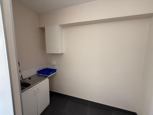 The unit includes one allocated undercover parking bay, and tenants share the use of a communal kitchen and restroom. Electricity is prepaid and shared among the three offices in the building. An alarm system may be added at an additional cost.