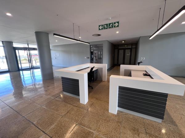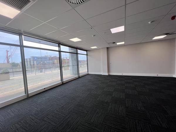 This ground floor office is 114m2, and has floor-to-ceiling windows with a view of the Silo Hotel and Cape Town harbour.