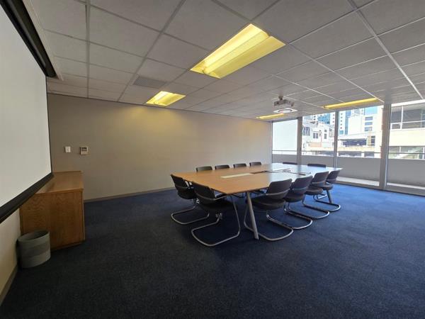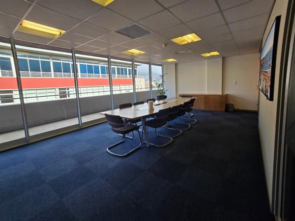 The office is move-in ready, featuring a modern reception area, glass-partitioned offices and boardrooms, open-plan workspace, and a full kitchen and pause area. With its refined finishes and natural light throughout, this is a turnkey solution ideal for financial, legal, BPO, or shipping firms seeking a prime address in Cape Towns commercial hub.