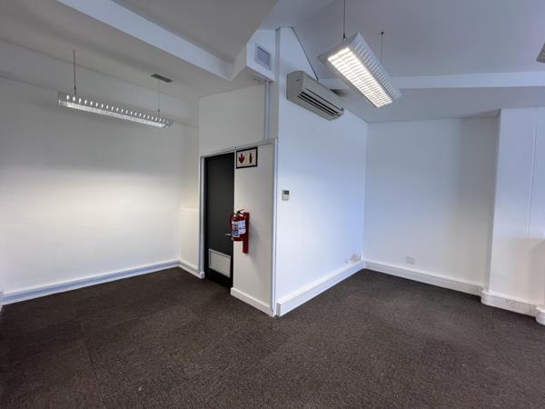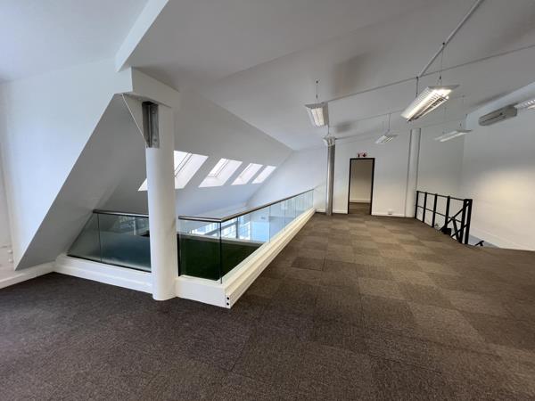 This loft-style office on the 3rd floor is 300m2 and filled with lovely warm natural light. It is a double-volume office, has multiple partitioned spaces that can be used as meeting rooms, boardrooms or private offices, storeroom or server room, there is a kitchenette and is fully air-conditioned.