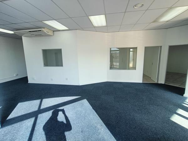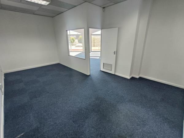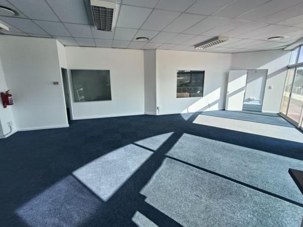 This well-positioned office space on Bill Bezuidenhout Avenue in Bellville offers a versatile and functional layout, ideal for a variety of business operations. The office features spacious open-plan areas along with large rooms perfectly suited for training sessions, meetings, or collaborative work. Generous windows throughout the space allow for an abundance of natural light, creating a bright and welcoming work environment. An exclusive-use balcony adds to the appeal, offering a private outdoor break area for staff or informal meetings.