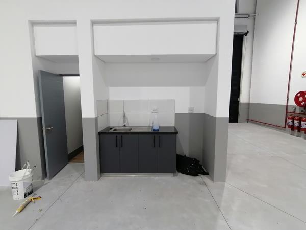A contemporary air-conditioned reception area creates a professional arrival point, leading to a spacious mezzanine-level office that can accommodate administrative, managerial, or operations teams. The design supports seamless interaction between office and warehouse functions. Staff benefit from a dedicated kitchenette and separate ablutions for warehouse and office personnel, enhancing day-to-day convenience. The property also includes six secure on-site parking bays for staff and visitors.