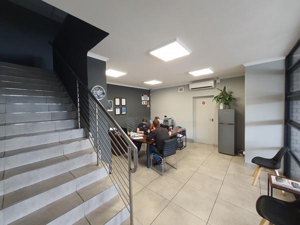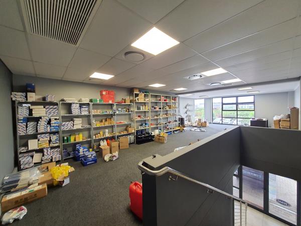 The office component provides a polished and professional environment. A spacious, air-conditioned reception area creates an impressive entrance for clients and suppliers, while the upstairs open-plan office offers ample room for administrative or managerial functions. A modern kitchenette and separate ablutions for both warehouse and office personnel ensure comfort and convenience for daily operations.