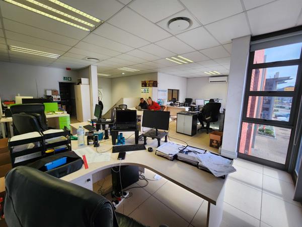 The unit offers a large, open-plan warehouse floor with excellent height to eaves and peak, providing generous vertical storage capacity and smooth internal workflow. A high roller shutter door allows for easy loading and off-loading of goods, while 3-phase 80-amp power supports a wide range of industrial and manufacturing needs. The warehouse also includes separate ablutions for office and warehouse staff, a spacious reception area, kitchenette, storage space under the stairs, and a large open-plan office upstairs with a dedicated file or server room all designed for efficiency and comfort.
