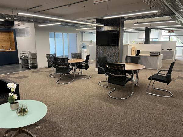 Ample open parking surrounds the building for both staff and visitors, with additional parking options available: three basement bays at R900 each and one shaded bay at R500. The location offers convenient access to the N1 highway in both directions and is situated on Jip De Jager Drive, making it easily accessible for commuters. Food and retail amenities are just a 2.4 km drive away at Welgemoed Forum, providing added convenience for employees.