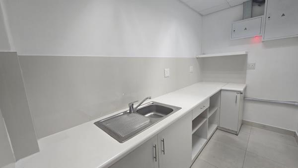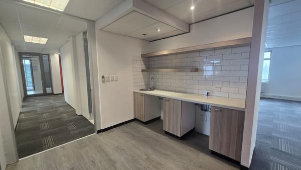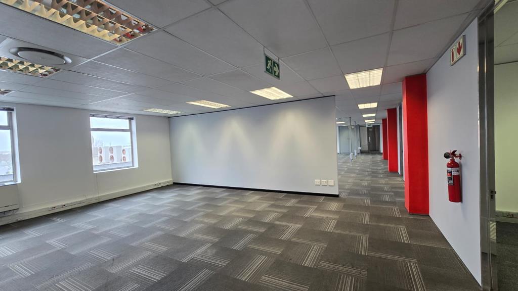 The 597m2 office, located on the second floor, presents a versatile and functional layout designed to accommodate a variety of business needs. It features two wings connected by a central foyer with a small meeting room. The right wing offers two large open-plan areas, a storeroom, multiple closed offices of varying sizes one with access to a private balcony, and two kitchenettes one creating a modern serving area. The left wing includes male and female bathrooms, three spacious boardrooms, three smaller offices, an open-plan workspace, and a balcony complete with a built-in braai a standout feature perfect for team gatherings. The right wing offers two large open-plan areas, a storeroom, multiple closed offices of varying sizes one with access to a private balcony, and a kitchenette with a comfortable relaxation space for staff.