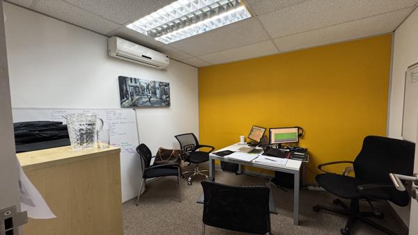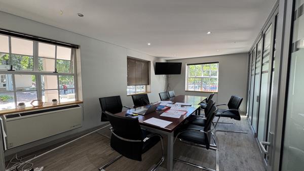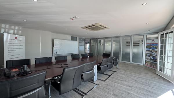 This 477m2 ground floor office space includes a large reception area and a boardroom that can be divided into two separate boardrooms. The boardroom opens directly onto a patio, while the unit also features a kitchenette, a spacious open-plan workspace, and 16 closed offices of varying sizes. Additional amenities include a server and storeroom, and the internal layout can be adapted to suit the tenants requirements.