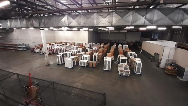 An integrated office component complements the industrial space, featuring a welcoming reception area, open-plan offices upstairs, and additional offices on the warehouse floor. Air conditioning in key areas creates a professional and comfortable working environment, while staff amenities include a kitchenette, locker room, and separate ablutions for office and warehouse personnel.