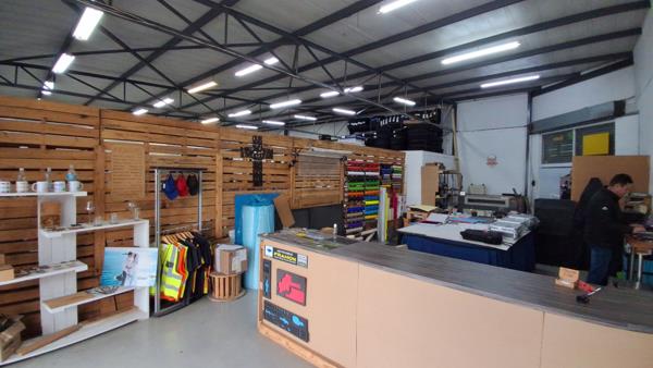 Spacious warehouse area suitable for storage or showroom use