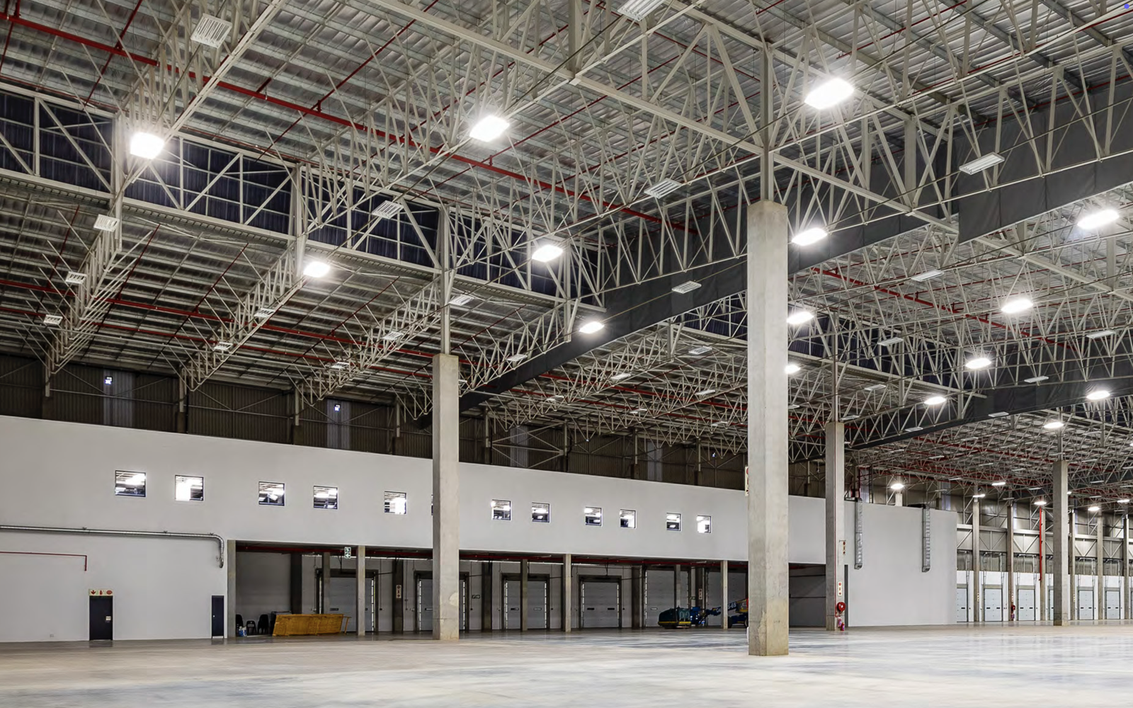 - The warehouse is equipped with essential amenities to support industrial operations, including high ceilings for storage capacity, multiple roller shutter doors for efficient loading and unloading, adequate lighting, and ventilation systems to maintain air quality.
