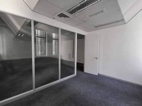 This 171m2 second-floor office space at Salga House features multiple private offices, a reception area, boardroom, in-house kitchen, and bathrooms. Large interior glass panels provide natural light and openness, while a modest open work floor adds versatility. Ideally located in Cape Towns bustling CBD, the building offers easy access to Strand Street, Waterkant Street, and St Georges Mall, with transport and everyday amenities just steps away.
