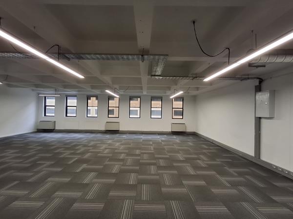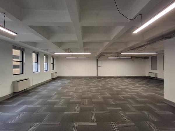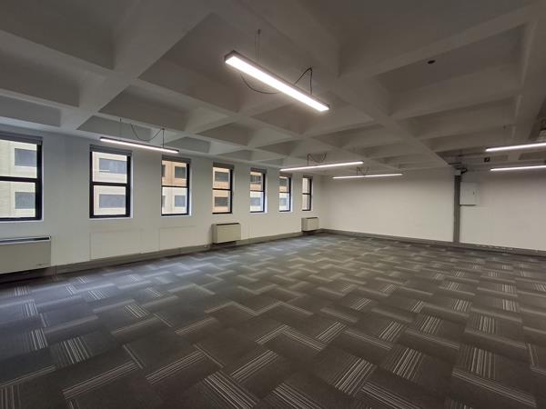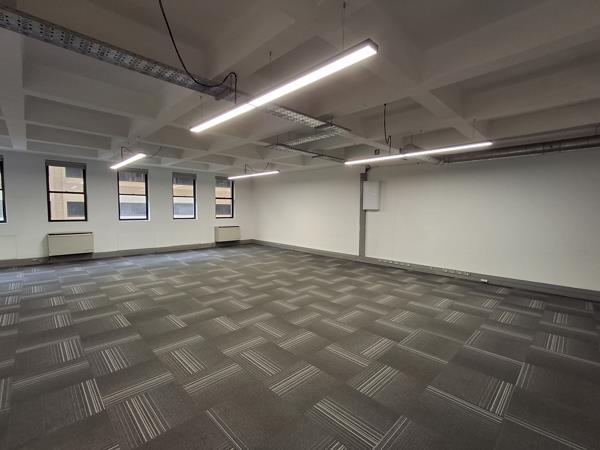 This 142m2 3rd-floor office is move-in ready and well positioned in the sought-after Foreshore area of Cape Town. The unit is carpeted and in pristine condition, featuring a modern in-house kitchen and a spacious open-plan workspace that can be tailored to your business needs. With large windows, the office is well lit throughout the day, creating a productive and welcoming environment.
