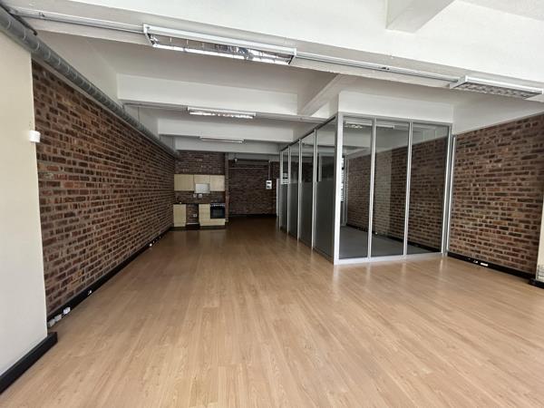 Exposed ceilings with HVAC and face brick elements give the space a nice contemporary look-and-feel.