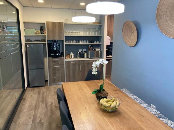 Large board room with break away area, multiple meeting rooms and offices, wet kitchen plus dining area, store room and more.