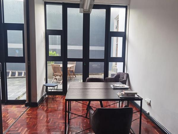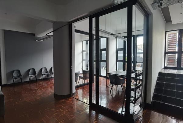 Modern and well-maintained office space To Let in the sought-after Kings Cross Corner, located at 9 Friend Street, Salt River. This secure, lock-up-and-go unit is move-in ready and ideal for a business looking for convenience and contemporary finishes. The space features a welcoming reception area, private office, glass-enclosed boardroom, and a fully fitted kitchenette. Additional amenities include a bathroom with shower facilities, air conditioning throughout, and beautifully maintained wooden flooring.