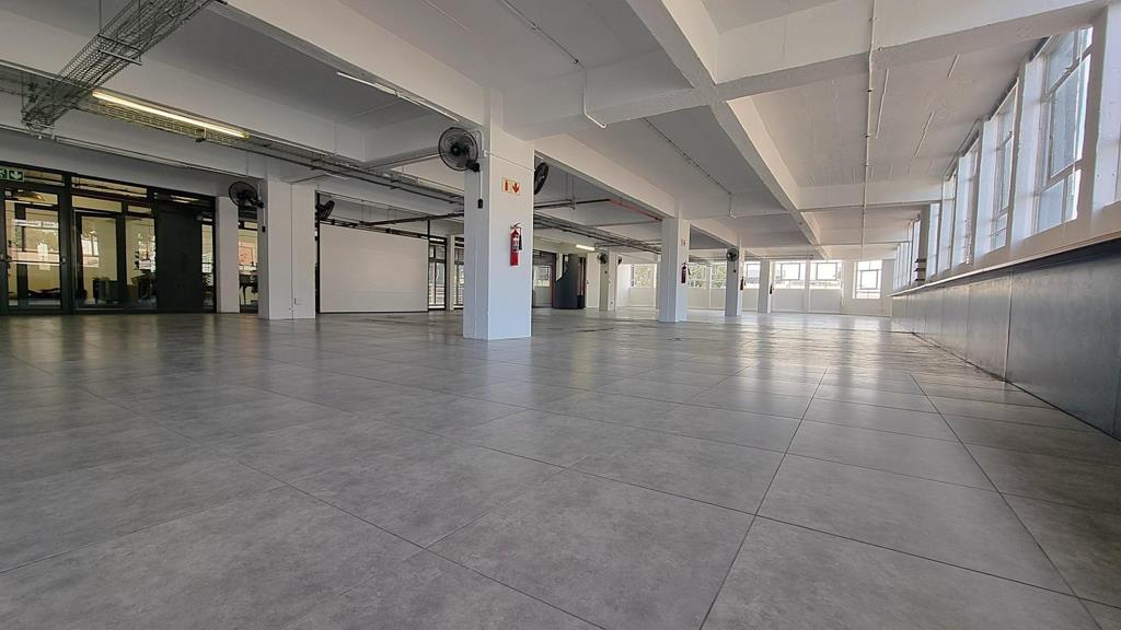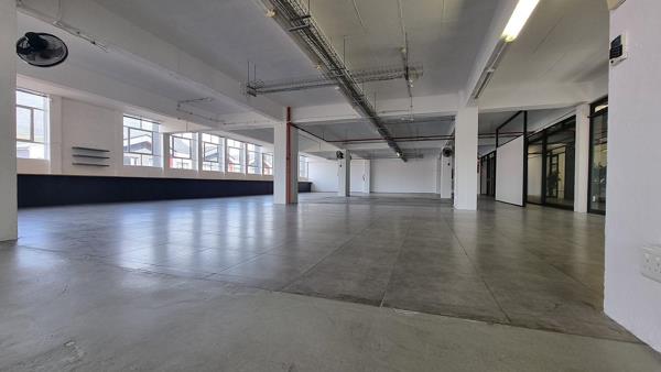 Position your business in the iconic Woodstock Exchange with this expansive 438m² first-floor office to let in Cape Town. Designed to combine industrial charm with modern functionality, this versatile workspace is ideal for creative agencies, design studios, production companies, or professional firms looking for a high-profile address in one of Woodstocks most vibrant commercial hubs. Large floor-to-ceiling windows flood the space with natural light, while sleek glass frontage and multiple access points offer excellent visibility and flexible layout options.