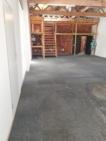 The open plan suite measures 100m and includes a mezzanine/storage racks.