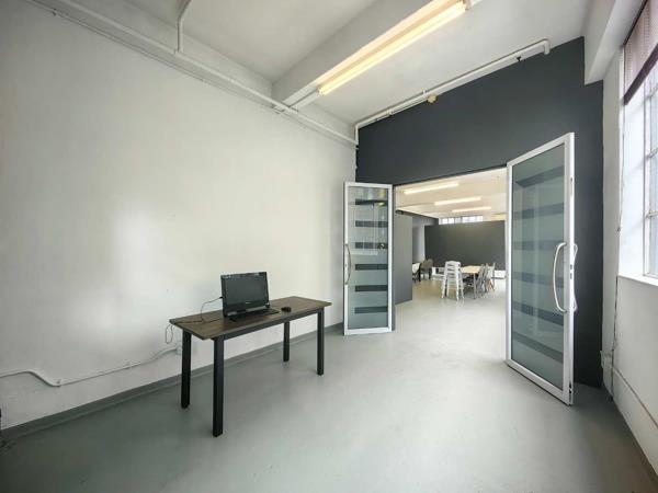 Immaculately placed on the first floor of Block A overlooking the central courtyard, this 69m Office Space To Let in Woodstock is the perfect office for design studios, architectural firms or any small businesses looking for satellite offices or creative working spaces. The office consists of a cozy open plan main area sectioned only by a single suspended divider concealing the fully functional kitchenette. The space also has a private office perfect for directors with a clear view of the main office area. The 69m Office Space To Let in Woodstock is also airconditioned with ample natural light through the wrap around windows.