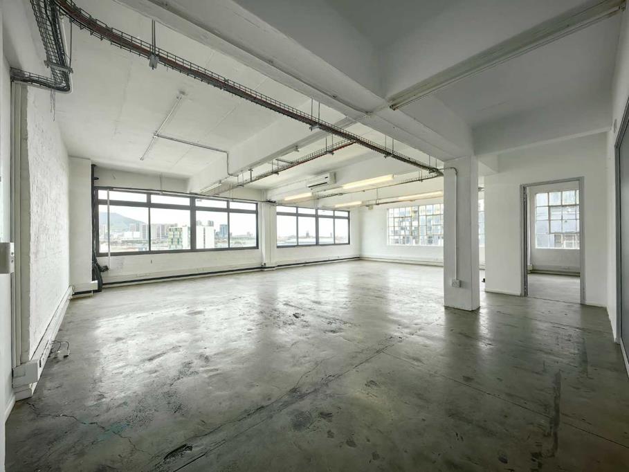 Simple yet so efficient, this 128m Office Space To Let in Woodstock comes with a large open plan floor space and a sizeable secondary space which could be used as a boardroom or a shared internal office. Being a corner unit coupled with large sliding windows, the space has beautiful panoramic views of the entire City Centre, Partial Harbour Views as well as a portion of our beautiful mountain landscapes. It comes airconditioned with full reticulation and lots of natural light and fresh air by simply sliding open the windows to give you that open air effect. It has access to a shared kitchenette as well as communal bathrooms on the same floor.