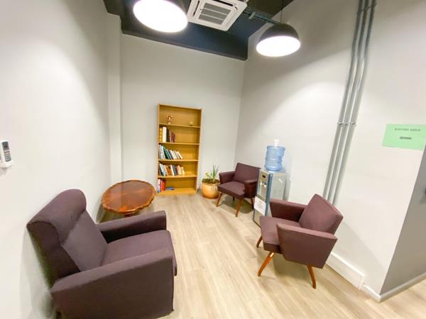 The interior is configured into multiple air-conditioned office spaces, offering a functional layout for a range of business operations. The unit also features private restrooms and a kitchenette for convenience.