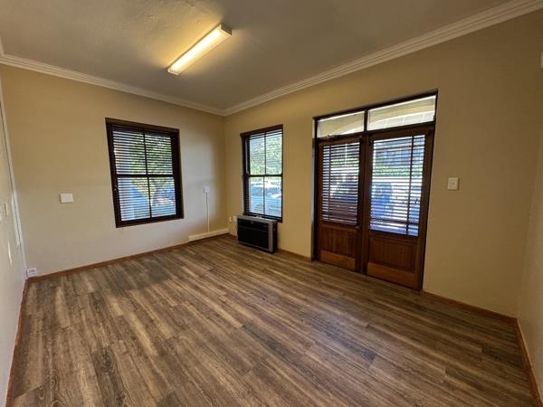This stunning 51m2 office space is available on the ground floor. This office offers flexible layouts, either two offices and a kitchenette or a reception area with a closed office. The kitchenette has a door to the outside. The space is air-conditioned, features beautiful flooring, and has excellent natural light. One allocated parking bay is available at an additional cost of R620 per month excluding VAT. Rental is R12 750 excl. VAT, parking, and utilities.
