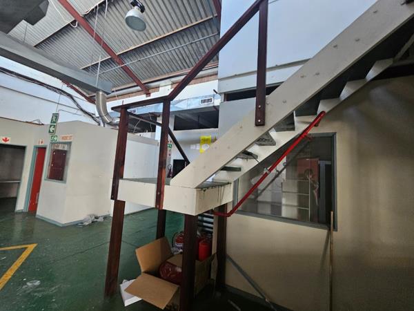 Inside, the space includes a reception area, multiple offices, boardrooms, kitchens, bathrooms, and storerooms, all neatly laid out and enhanced by ample natural light. A mezzanine level adds valuable additional storage or workspace, while the neat and professional finish makes it suitable for a wide range of industrial or commercial operations. This unit presents a practical and well-rounded solution for businesses looking to operate from a secure, high-exposure premises in a prime industrial node.