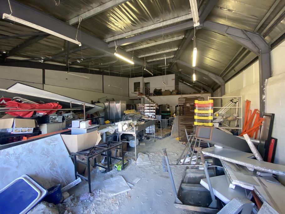 The offices extend onto a mezzanine level and include additional space below, which could also be used for extra storage if required. A roller shutter door provides easy access for loading and offloading.