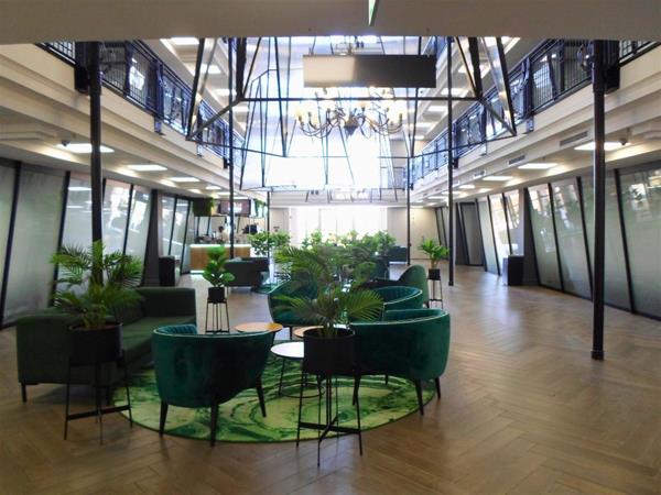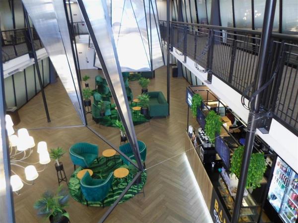 Beautifully designed atrium with acoustic glass for natural light and reduced noise
