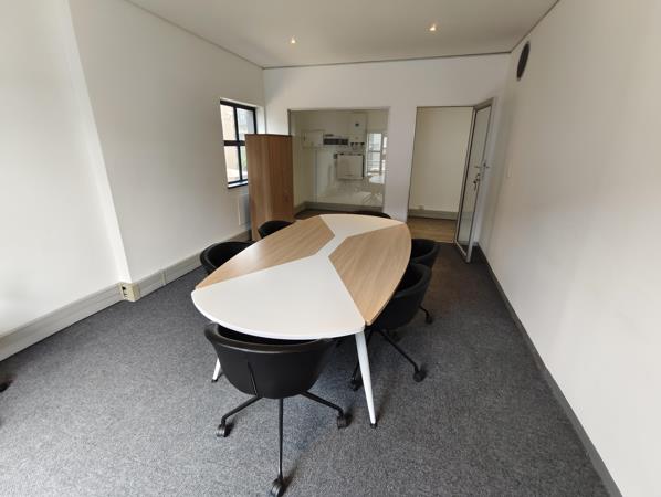A well-maintained and carpeted 156m2 office is available to let in the sought-after Waterford Mews 5, Century City. Situated on the first floor, this office features a functional layout with a dry kitchen on the inside and a wet kitchen on the outside, quality finishes, and excellent natural light throughout. Two balconies provide tranquil canal viewsperfect for staff to relax during breaks. The rental includes two secure undercover parking bays as well as a solar energy contribution, offering both convenience and cost efficiency. Additional parking can be arraged.