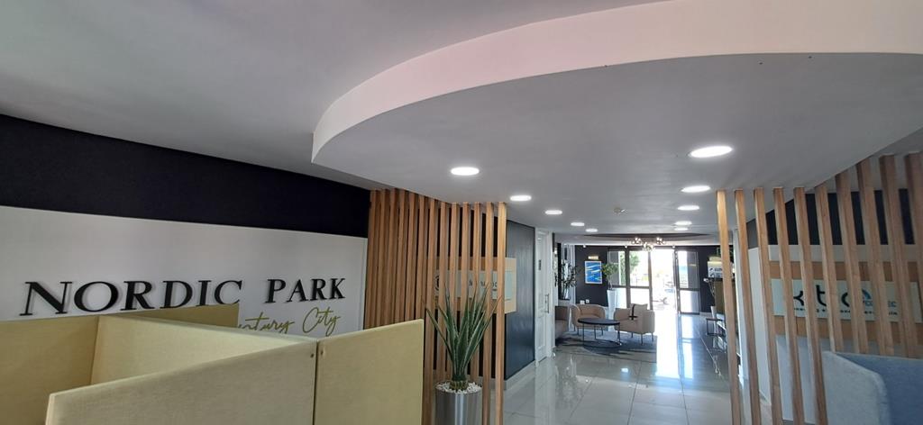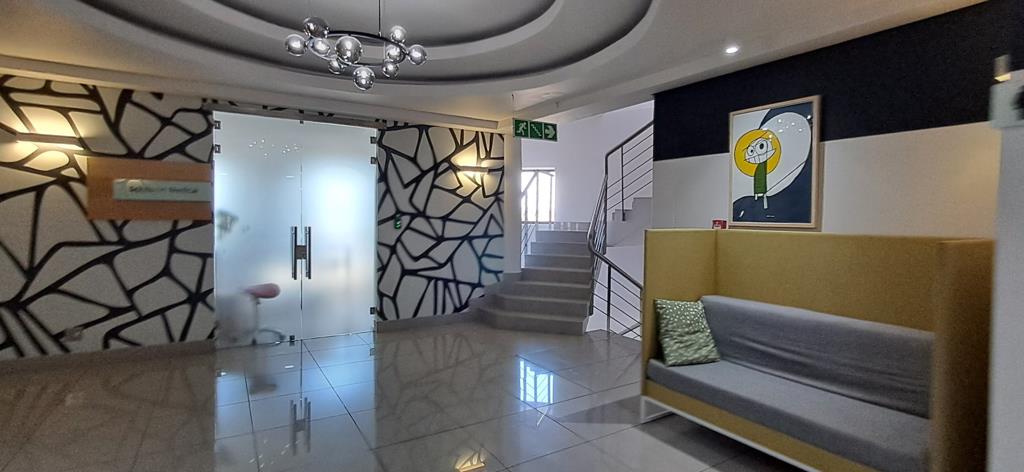 The property at Nordic Park, Century City, offers an impressive range of features designed to meet modern business needs. This energy-efficient building is equipped with solar panels and a generator, ensuring continuous power supply and reducing operational disruptions. Convenient lift access leads to a stylish foyer featuring comfortable seating and contemporary décor, creating a professional and welcoming first impression.